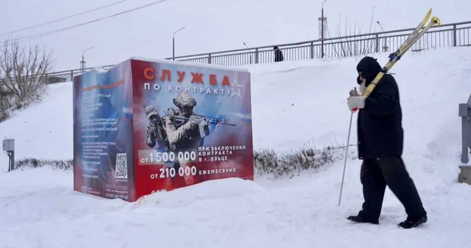 On the riverbank I spot an army recruitment billboard. It promises a one-off sum equivalent to £15,000 to anyone who’ll sign up to fight in Ukraine.